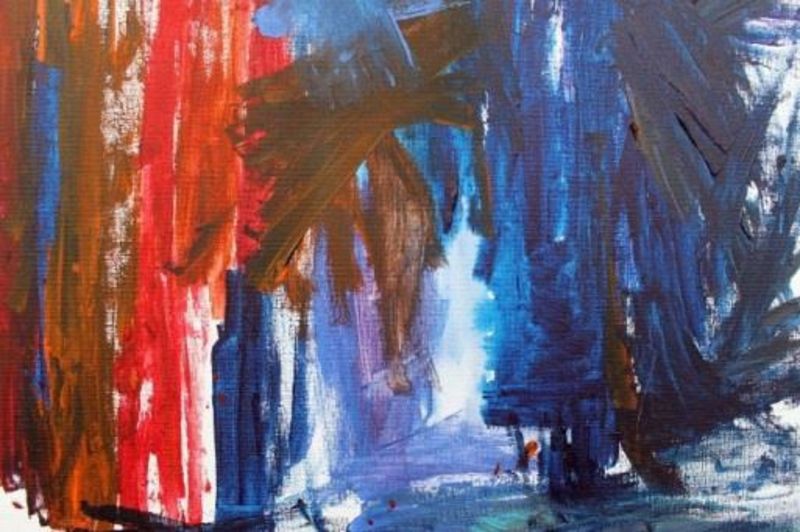 Heute bespielen Worte und Farbe gemeinsam die Leinwand. Die Farbe präsentiert sich jedoch als dominierende Hauptrolle, die Schicht, für Schicht das Farbenspielt bestimmt.